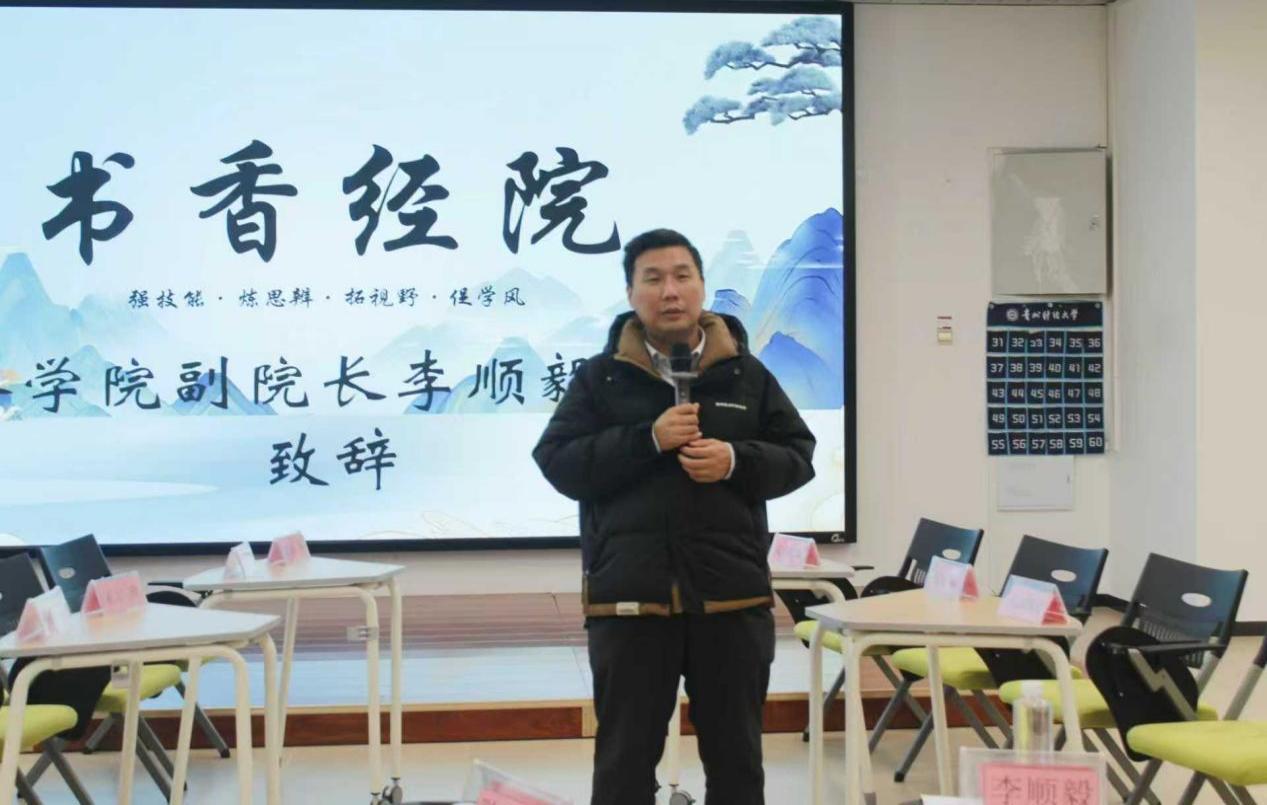 活动伊始,副院长李顺毅致辞。他强调辩论赛是培养学生逻辑思维、表达能力与团队协作精神的重要平台,希望同学们以辩为媒,在思想交锋中深化知识理解、传承书香文化,展现经院学子勤学善思的风貌。
